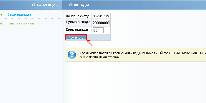 02. Чтобы сделать вклад перейдите во вкладку сделать вклад;