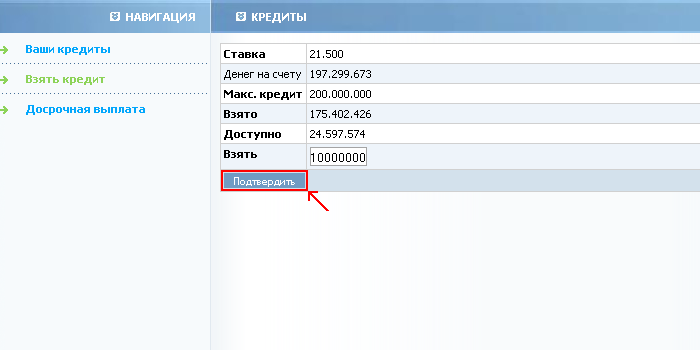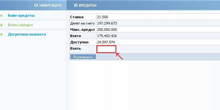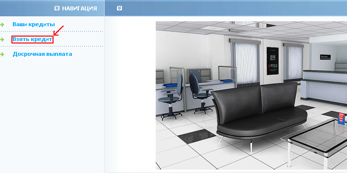 02. Чтобы получить кредит перейдите во вкладку взять кредит;