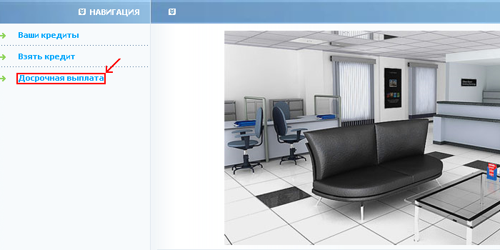 07. Для выплаты кредита не дожидаясь окончания срока зайдите во вкладку досрочная выплата;