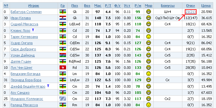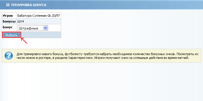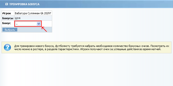 01. Для получения бонуса, игрок должен набрать достаточное количество бонусных очков (число в скобках). После этого ему можно установить новый бонус. Это будет отмечено ссылкой в ростере, на которую нужно нажать;