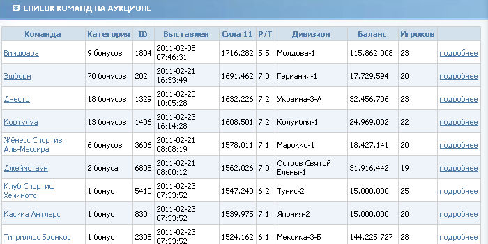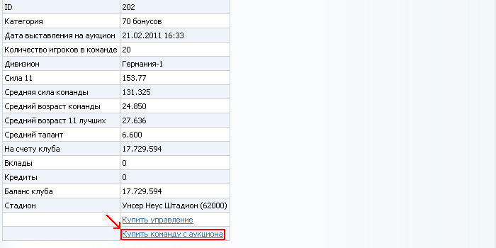 08. Если вас устраивает команда - купите ее с аукциона за бонусы.