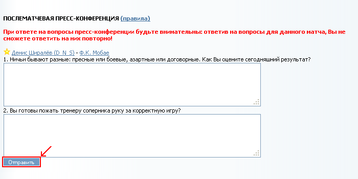 После каждого матча чемпионата до начала следующего тура необходимо ответить на вопросы пресс-конференции;