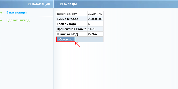 02. Чтобы сделать вклад перейдите во вкладку сделать вклад;