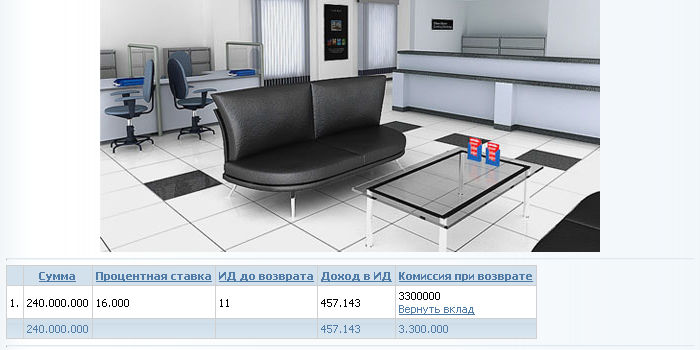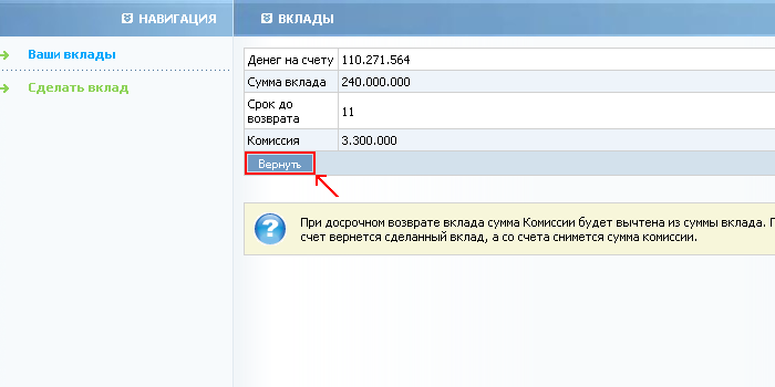 08. Если вы согласны потерять часть вклада в виде комиссии нажмите вернуть вклад.