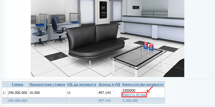 07. Около возвращаемого вклада нажмите вернуть вклад;